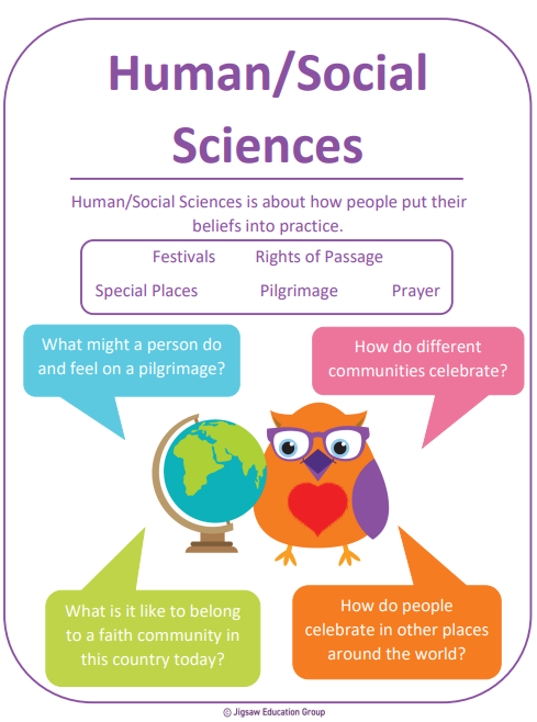 At North Marston CE School RE is taught using an enquiry approach supported by the Jigsaw RE scheme of work and in line with Bucks Agreed Syllabus for RE 2022. Each class learns about Christianity and one other world view. Staff ensure there is a balance between Theology, Philosophy and Human Sciences when exploring worldviews. They carefully choose resources so that pupils understand that the religions they study are worldwide.